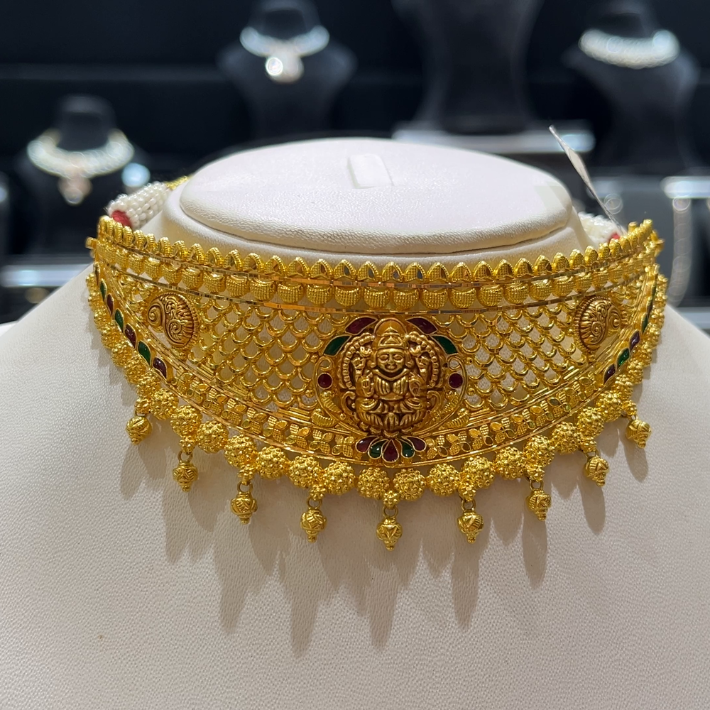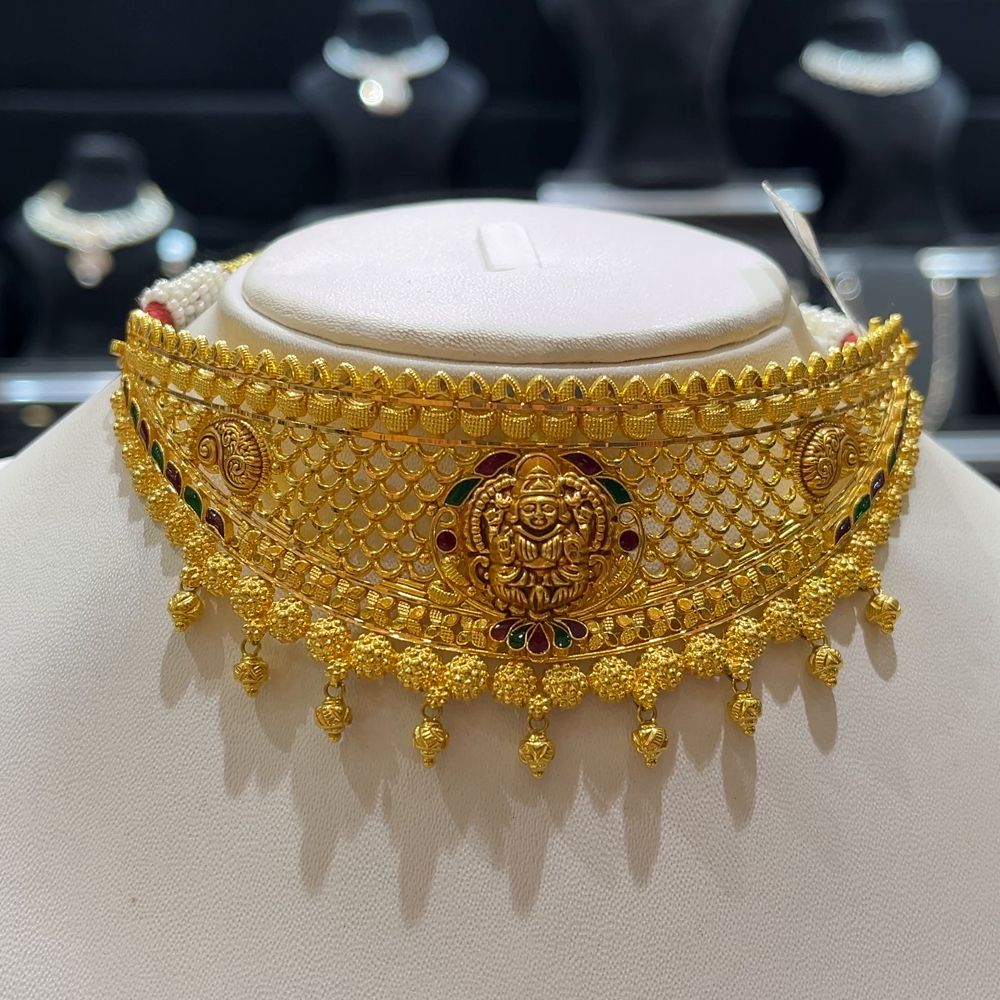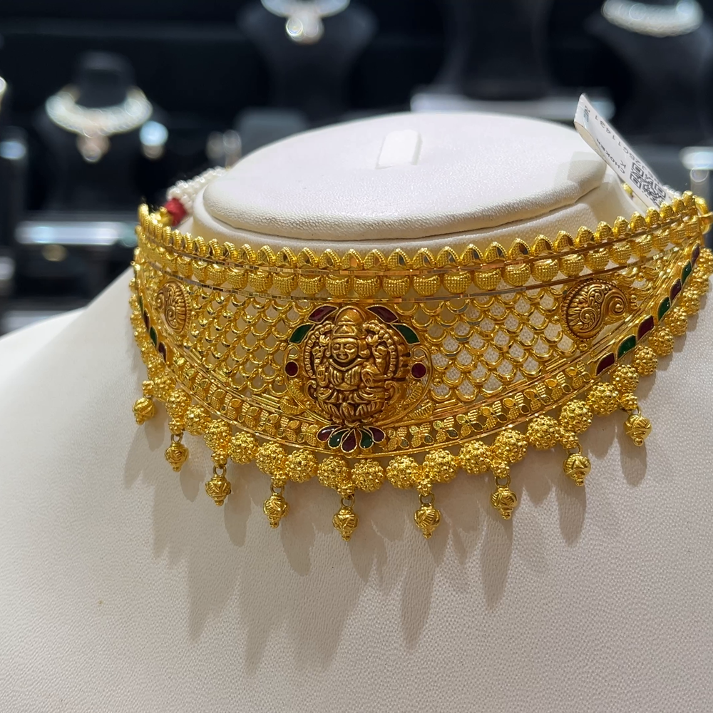 Elevate your traditional style with this elegant 25.72 grams 22K Yellow Gold CHOKER, crafted with precision and artistry. Made in pure 916 hallmark gold, this timeless piece brings a touch of sophistication to your jewelry collection.