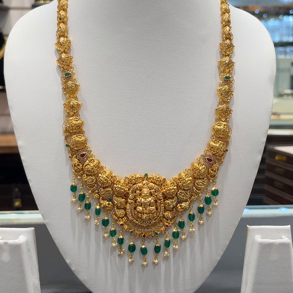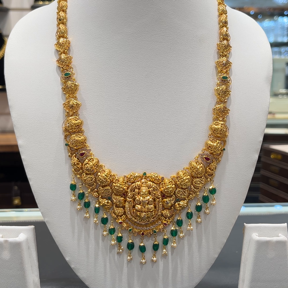 Elevate your traditional style with this elegant 33.549 grams 22K Yellow Gold HARAMS, crafted with precision and artistry. Made in pure 916 hallmark gold, this timeless piece brings a touch of sophistication to your jewelry collection.
