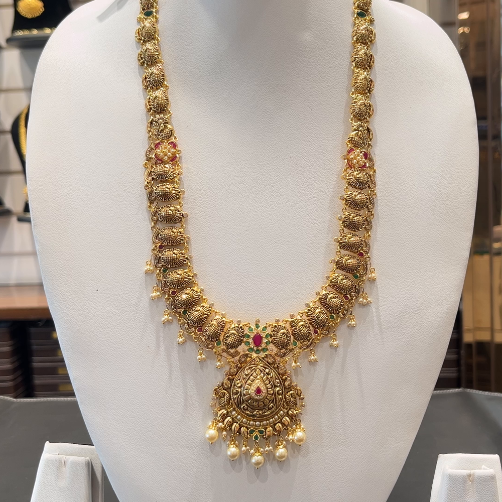 Elevate your traditional style with this elegant 37.582 grams 22K Yellow Gold HARAMS, crafted with precision and artistry. Made in pure 916 hallmark gold, this timeless piece brings a touch of sophistication to your jewelry collection.