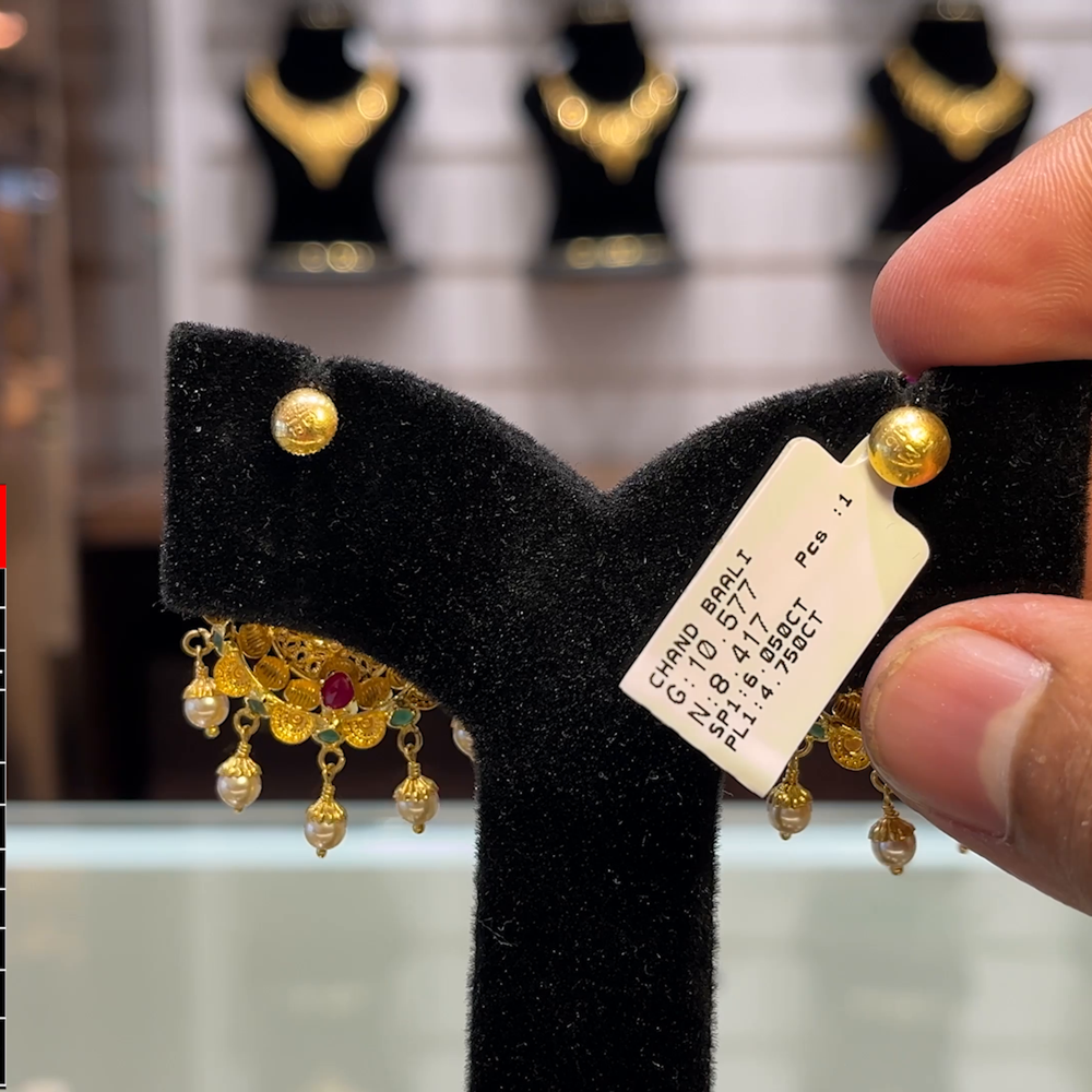 Elevate your traditional style with this elegant 8.417 grams 22K Yellow Gold EARRINGS, crafted with precision and artistry. Made in pure 916 hallmark gold, this timeless piece brings a touch of sophistication to your jewelry collection.